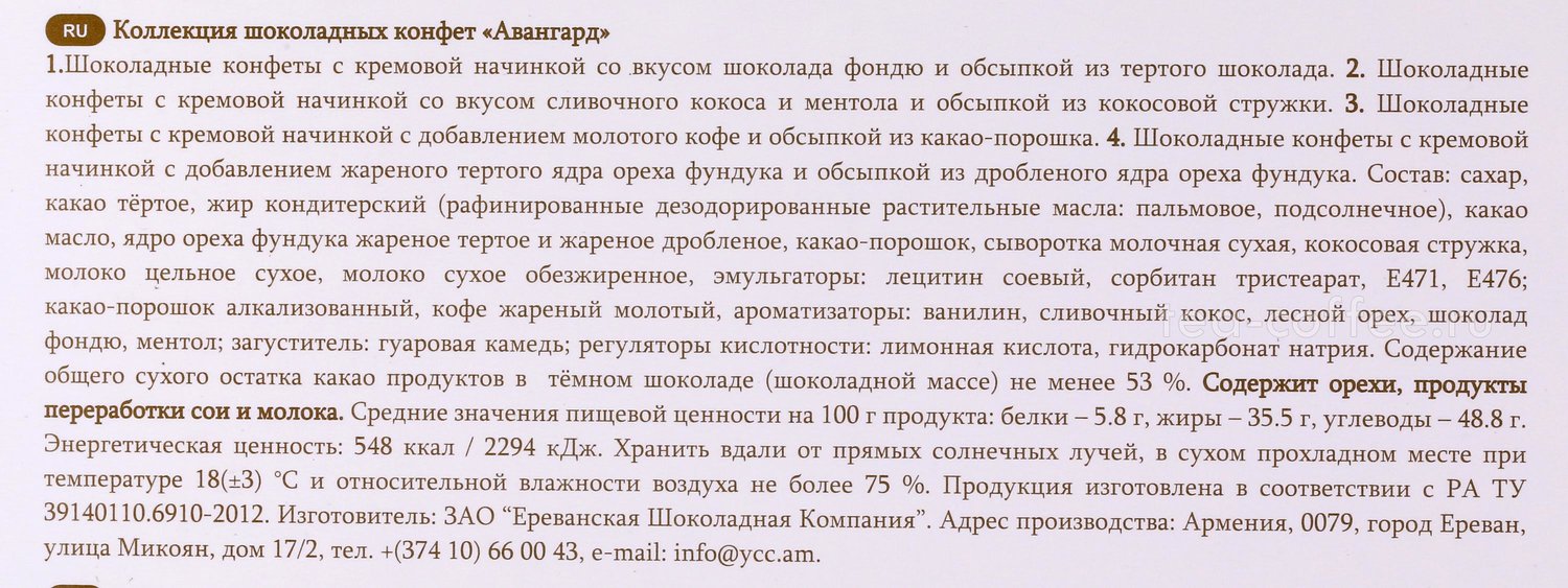 Конфеты Mark Sevouni Avantgard Chocolate Collection Авангард Шоколадная коллекция 360 г