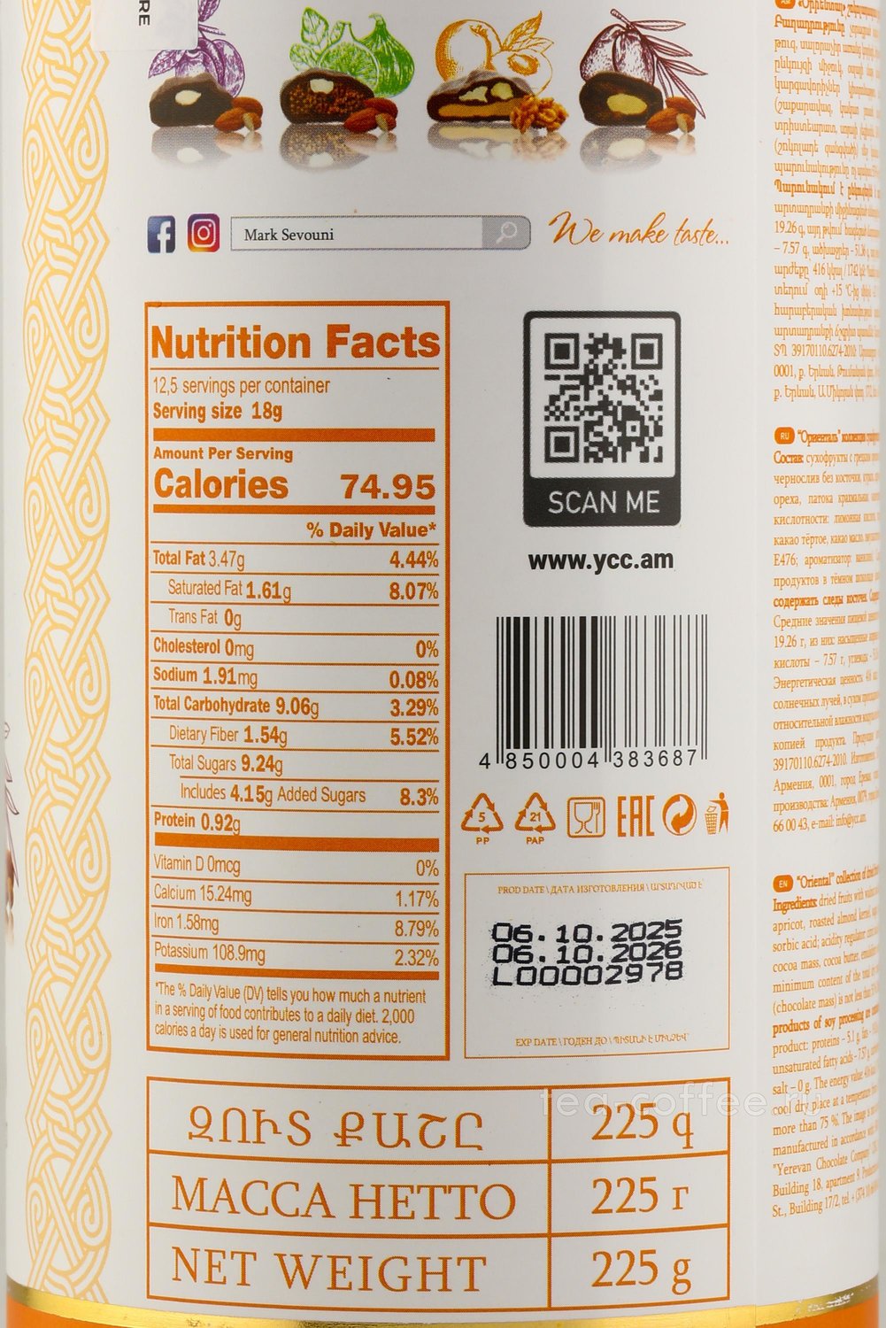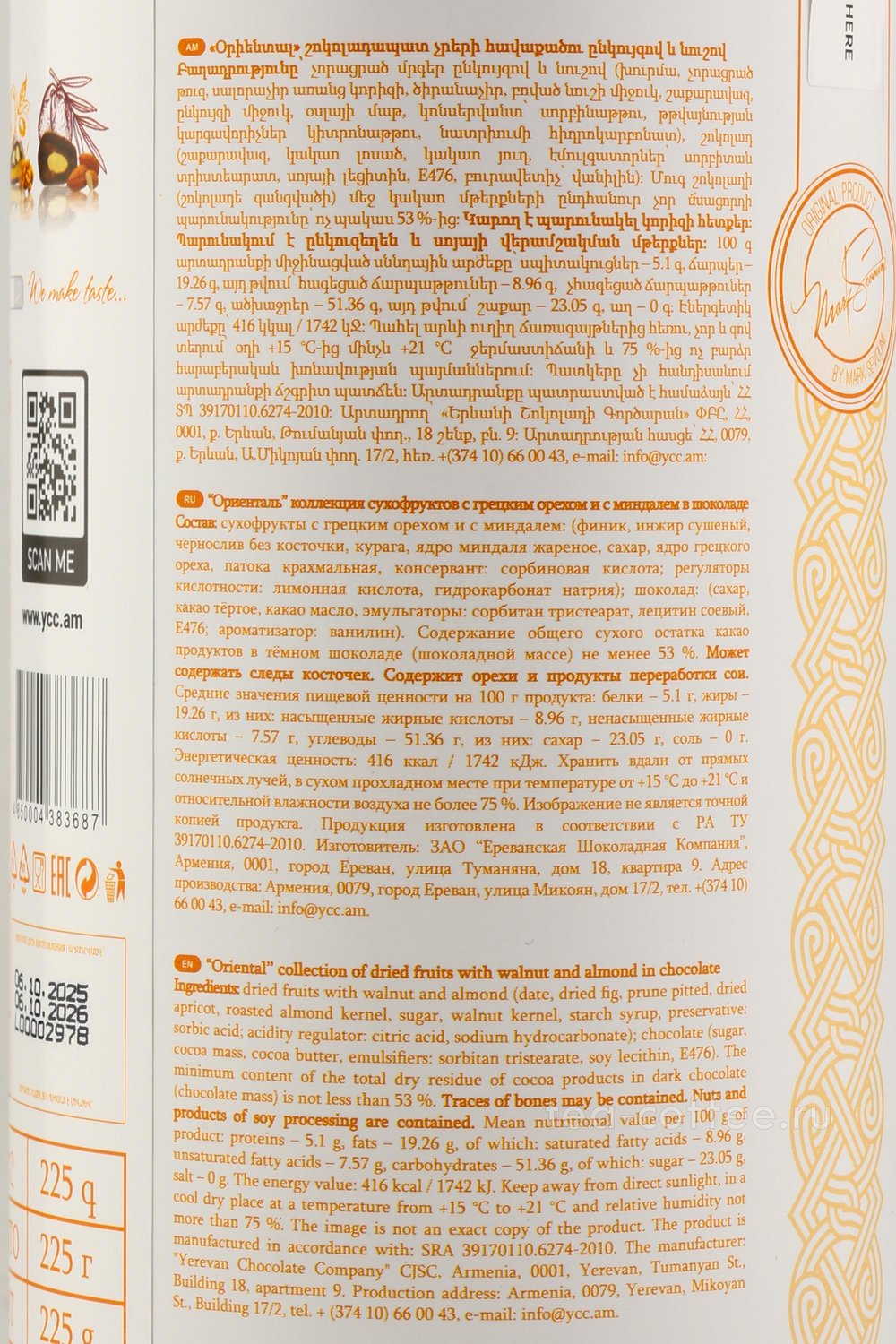 Конфеты Ассорти Mark Sevouni Oriental Collection сухофруктов с грецким орехом и миндалём в шоколаде 400 г
