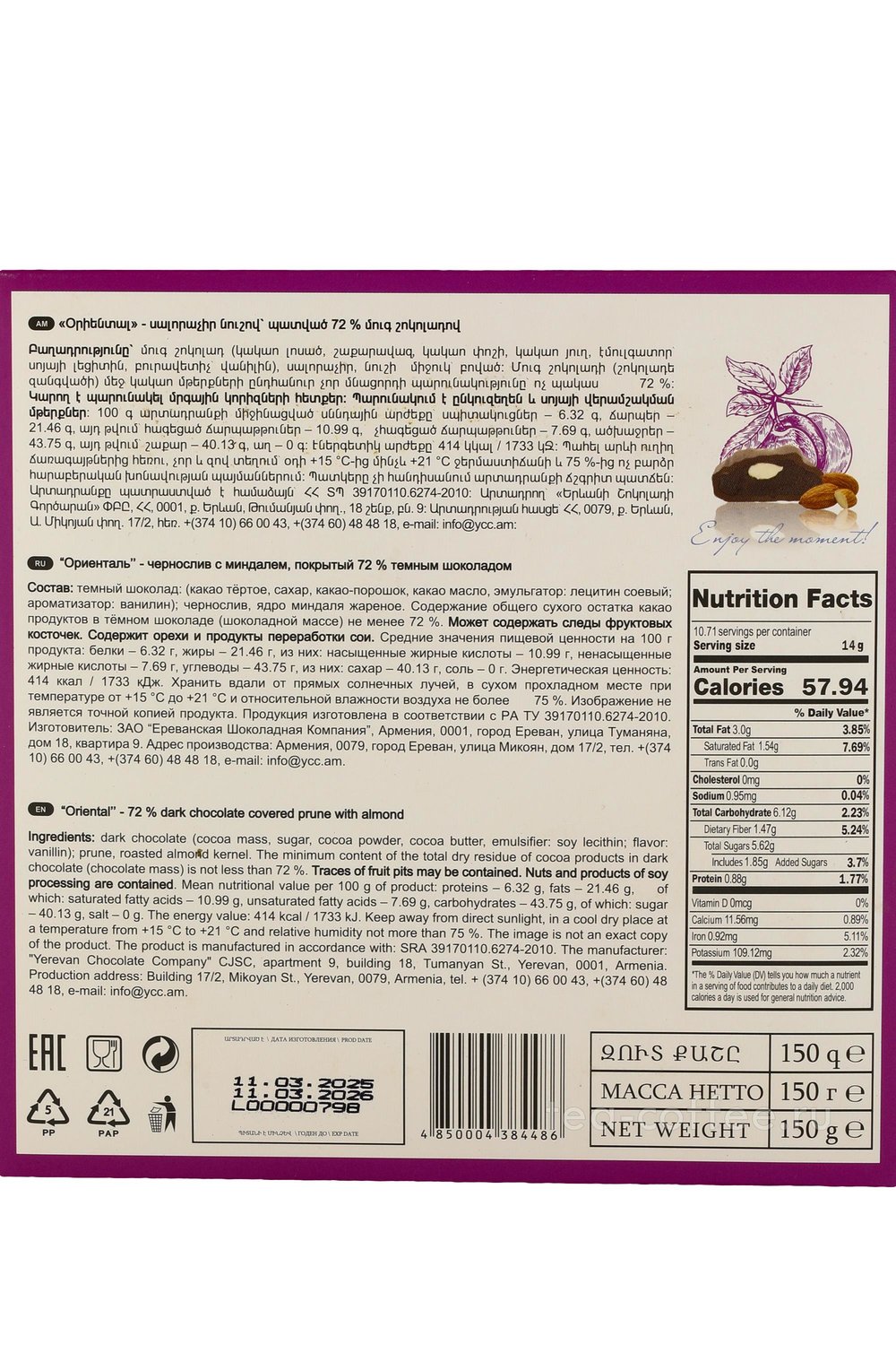 Конфеты Ассорти Mark Sevouni Oriental Collection сухофруктов с грецким орехом и миндалём в шоколаде 400 г