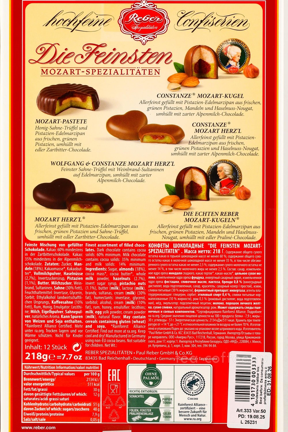 Reber Constanze Mozart Kugeln Шоколадные конфеты из белого шоколада с орехом пралине 120 гр