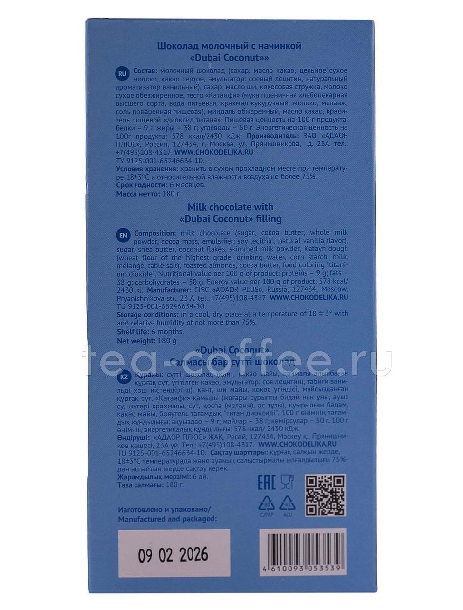 Chokodelika Шоколад молочный Дубайский Dubai Pecan (пекан) 180г