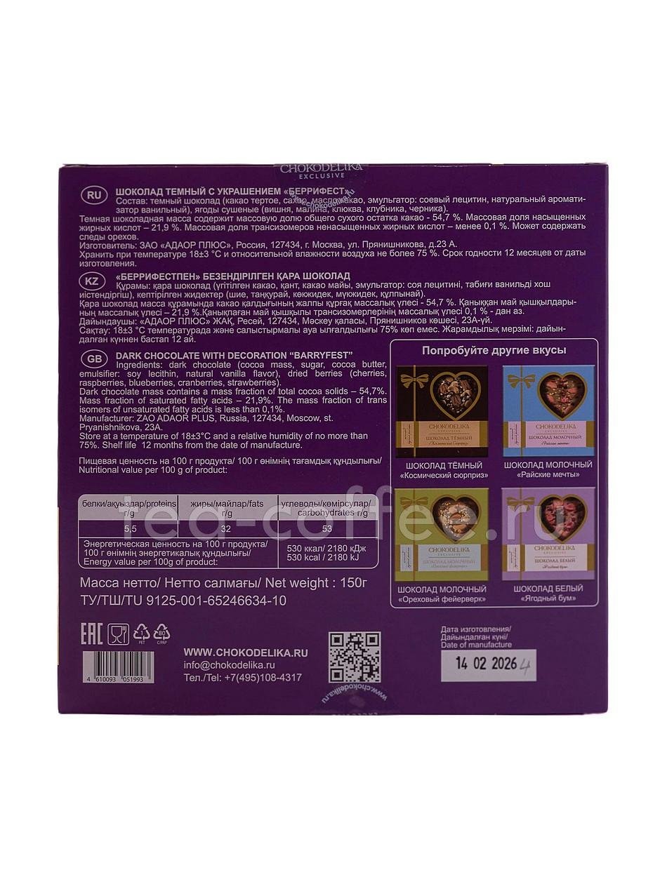 Chokodelika Шоколад темный Бэррифэст 150 г