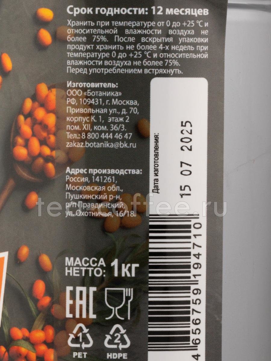Фруктовое пюре Botanika Stories Облепиха 1 кг